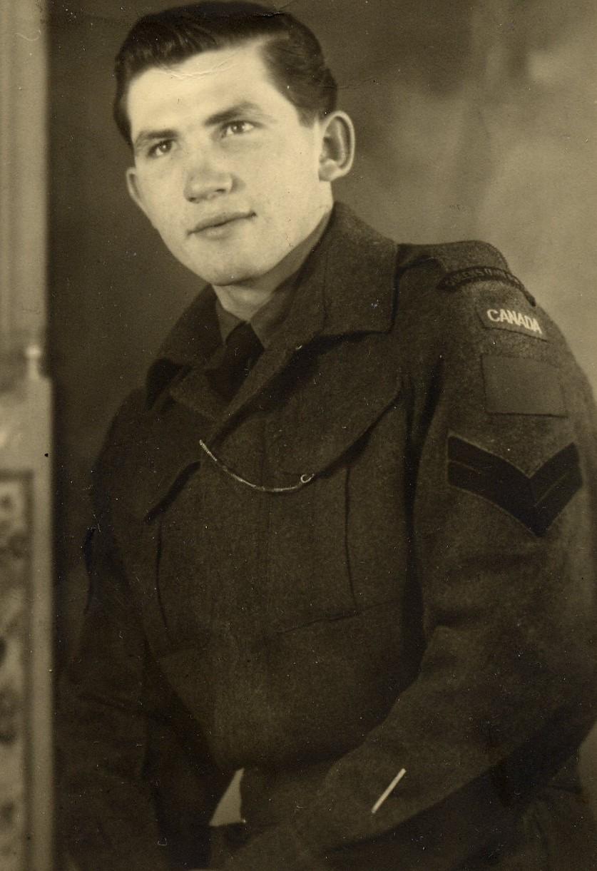 After landing on Juno Beach on D-Day, QOR fought through Normandy, Northern France, Belgium and Holland, where they liberated vital ports. During his combat trek, Mike rose to the rank of Corporal (Section Leader).