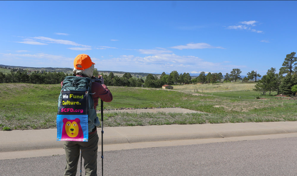 Over the course of 10 days in May, local naturalist and writer, India Wood, embarked on a diagonal hike across the Denver metro region. She had already hiked the first known “X” through Colorado from 2020-2022, traversing 1,500 miles of farms, ranches, and forests across the state. This time around, she wanted to see where much of Colorado’s population lives and works along the front range – by foot. Given that she was going to walk through each of SCFD’s seven counties, Wood decided to raise awareness of the district as she walked. So, she set off on her journey from Parker to Boulder armed with an SCFD banner for her backpack and a pocketful of SCFD stickers to share with residents along the way.