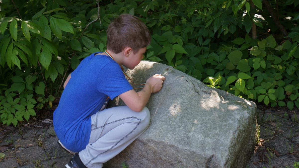 Child investigates a rock at Aullwood 2019 Photo: Aullwood Audubon / Jessica Picirrili | |