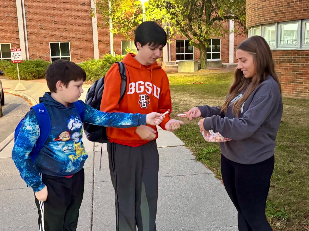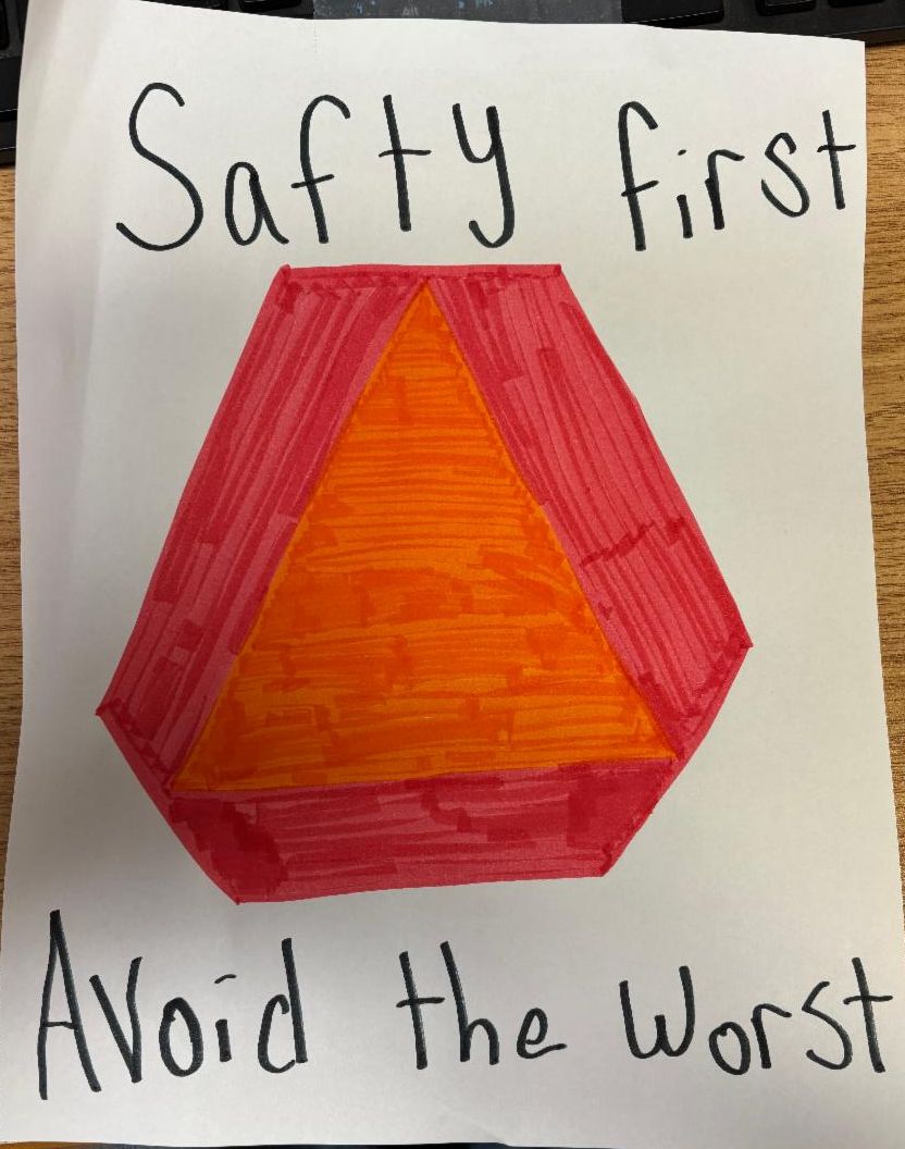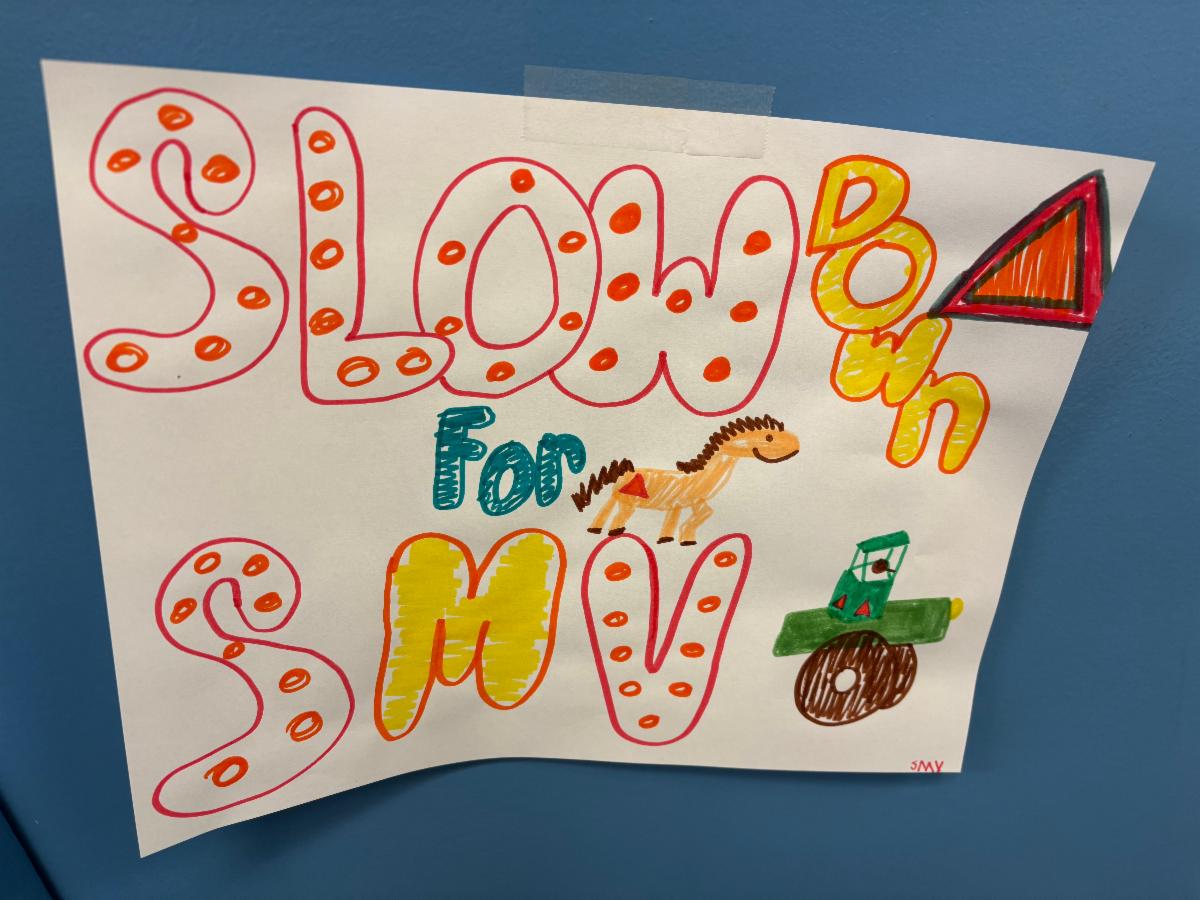 As harvest season ramps up, Wednesday’s activities focused on farm vehicle awareness. Students learned about staying safe by watching for Slow Moving Vehicle (SMV) triangles and flashing lights, and to slow down and pass carefully when it is safe to do so. They also created their own SMV triangles with personalized PSAs such as “See this, move over” and “Safety first, avoid the worst.” Throughout the day, SMV triangles were hidden around the high school, and whoever found one received a box of candy from Mrs. Conway. This fun activity helped reinforce the importance of recognizing these symbols on the road and sharing space safely with farm equipment.