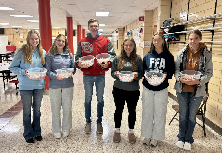 To wrap up the week, students and staff were encouraged to wear blue for police, red for firefighters, or farm wear in honor of the farmers affected by distracted driving. As students arrived at school, FFA members stood in the parking lot and at the drop-off line to check for seatbelt use—rewarding “Smarties” to those who were buckled up and “Dum-Dums” to the very few who weren’t and reminded them to buckle up for safety.