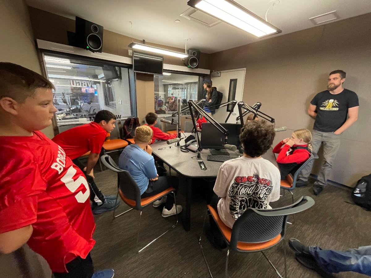| | Dr. JoBeth Gonzalez took her 7th and 8th grade Communication Skills students on a field trip to BGSU’s Kuhlin Center on October 1, where they got a hands-on look at media in action. Highlights included touring the building and exploring the TV, sound, and radio studios, experimenting with green screen and Foley sound effects, and chatting with BGSU professors and media professionals! | | | Follow us on Social Media | | | | |