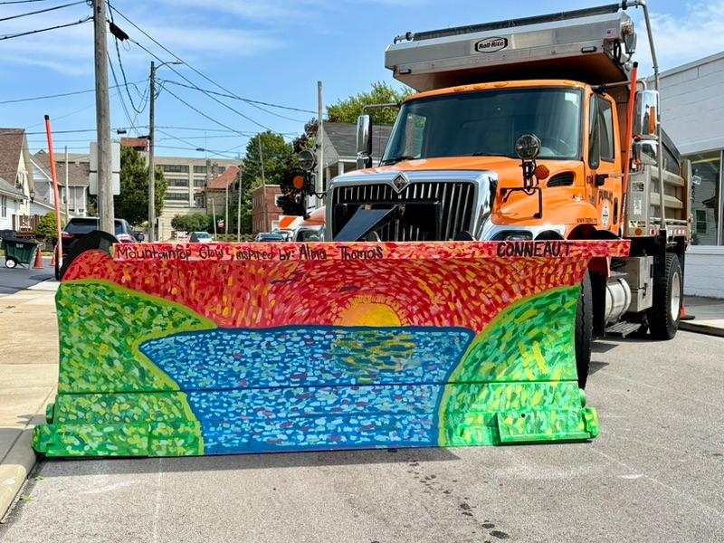 Our students are also sharing their artistic talents at the Black Swamp Arts Festival this weekend. BGCS art students from Conneaut, Crim, Kenwood, Bowling Green Middle School, and Bowling Green High School painted snowplow blades which will be displayed as road barriers during the festival and later used by the city in the winter. The high school plow features a design inspired by Ohio-born painter Charles Burchfield and his watercolor, “An April Mood,” while the middle school plow showcases vibrant dancing figures in the style of Keith Haring, known for his bold, pop-art designs.