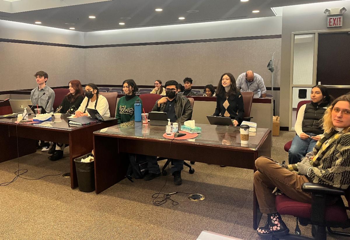 Freshman, sophomore, junior, and senior students worked together to learn the case of Maren Murgia v. Hayden Hardy.