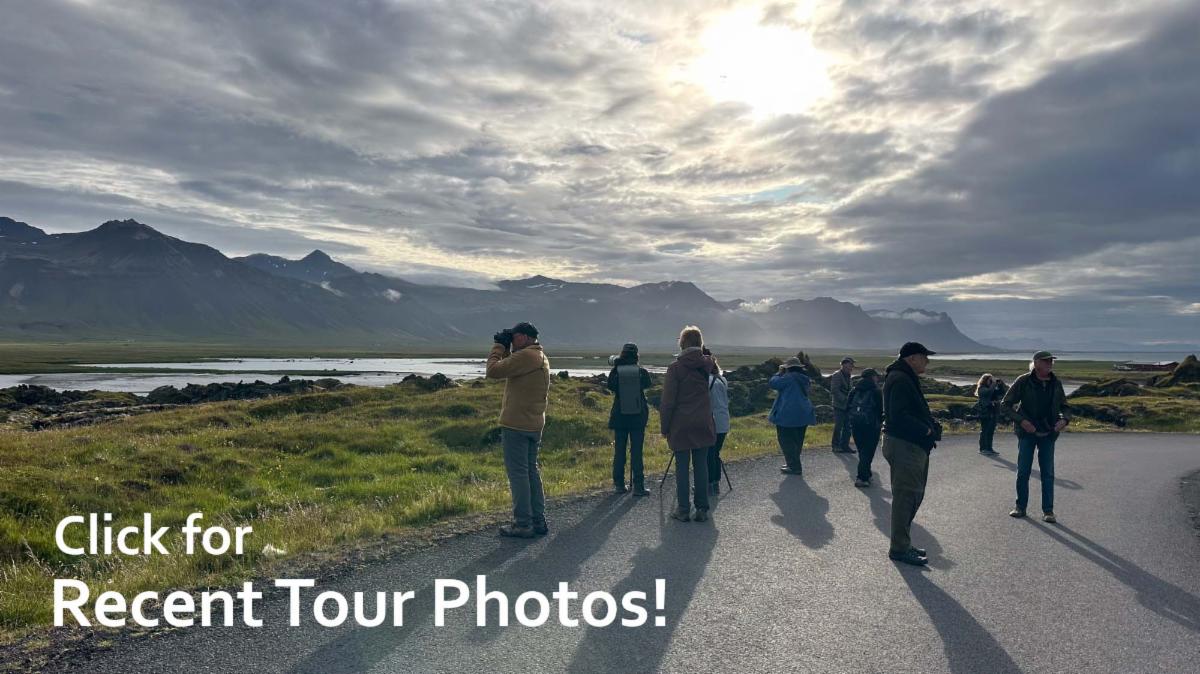 Our thanks as well to guide Cory Gregory for the group shot below, showing folks birding on a brisk morning in Iceland.