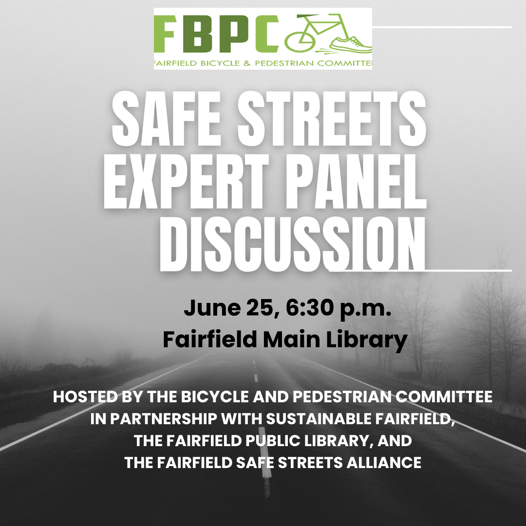 This event is hosted by the Bicycle and Pedestrian Committee in partnership with Sustainable Fairfield, the Fairfield Public Library, and the Fairfield Safe Streets Alliance, as part of the Sustainability and Inclusive Growth Speaker Series. Let's work together to create streets that protect all road users!