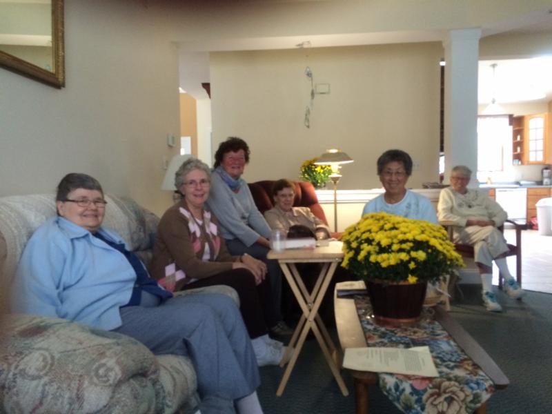 Some members of the two NJ clusters gathered on October 3 at St. Clare's in Mt. Ephraim to celebrate three important occasions: Kathy Maire's birthday, the Blessing of Animals, and the vigil of the Feast of Francis. The ongoing brunch kept our hearty appetites satisfied; the enjoyable, light-hearted conversations which brought us down memory lane was wonderful; the blessing of "Beacon", our four-legged cluster member, along with the Transistus, made our get-together most delightful. These occasional gatherings are so important in light of the distance between our homes/ministries. We just seem to "pick up where we left off" at the previous gathering. Next time we will be singing "We wish you a Merry Christmas".