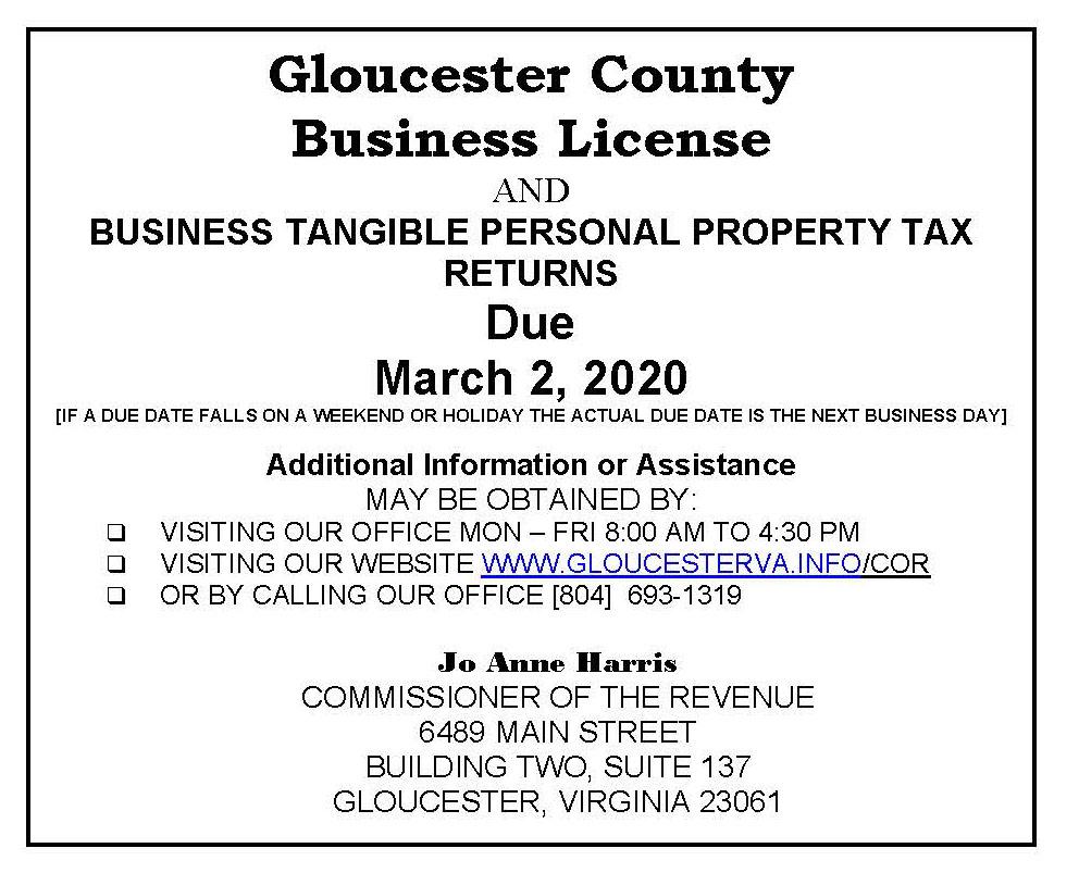For more information, contact Gloucester Public Utilities at 804-693-4044.