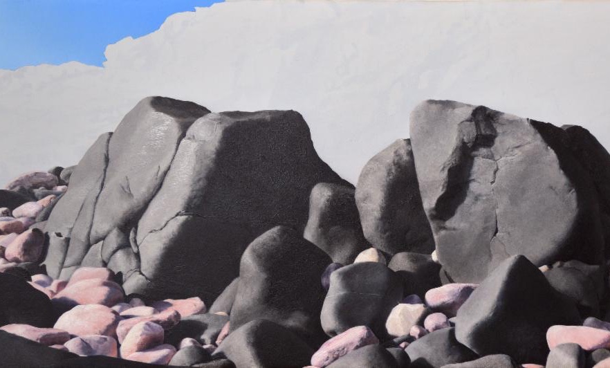 Detail of Lillian Bayley Hoover, no ruined stones, 2020, Oil on Dibond panel, 9.75 x 22 inches | |
