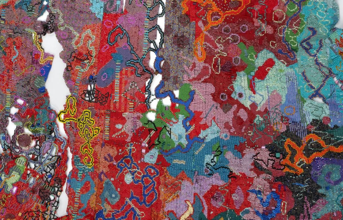 | | Detail of Paul Daniel, Sun Tatter, 2006, installed at the Biggs Museum of American Art, Dover, DE. | | Detail of Joyce J. Scott, Japanese Silk, 2024-2025 | | |