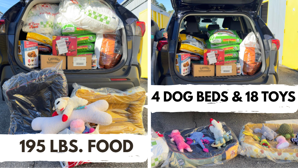 Heidi’s Hope for Homeless Animals, Inc. spread some extra holiday cheer by donating ten bags of dog food (275 pounds), four cozy new dog beds, a box of Milkbones, Greenies nutritional supplements, and 18 fun toys to help 15 at-risk dogs rescued from a high-risk shelter in Surry County through Long Road Home Rescue. These gifts are helping make their Christmas brighter, warmer, and filled with comfort as they wait for loving forever homes, giving them full bellies, soft places to rest, and moments of joy during a time that can be uncertain. With every wagging tail and playful moment, we’re reminded how compassion and community support can help turn second chances into happily-ever-afters.