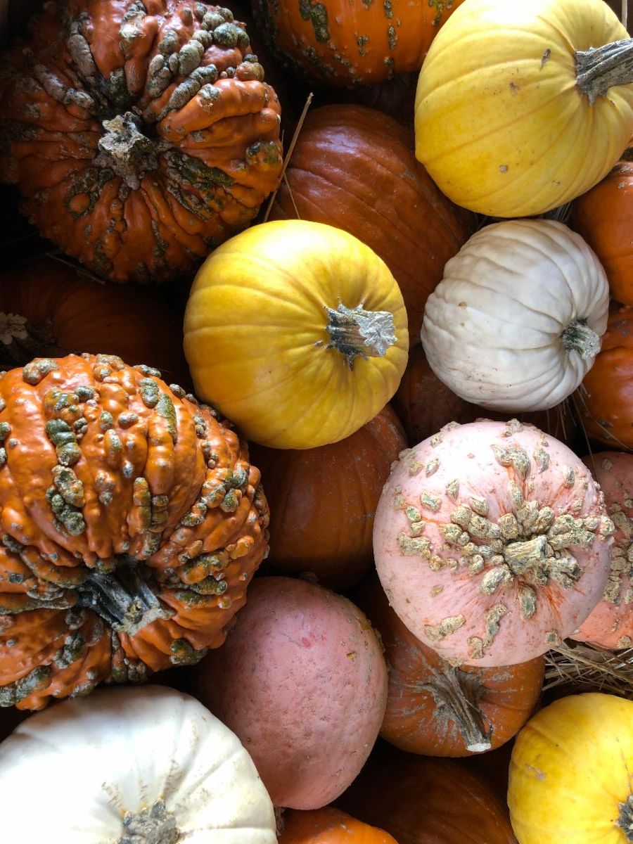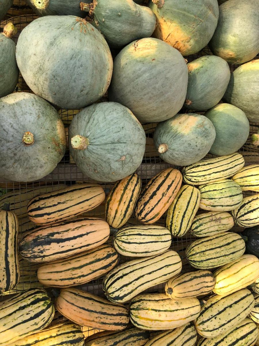 At Ignatius Farm we grow the following winter squash: hubbard, delicata, butternut, buttercup, spaghetti, acorn, gourds and pumpkin. We grow edible (pie, seed, dual purpose) and decorative (jack-o lanterns) pumpkins. This is the first year we have grown gourds since 2009! Winter squashes are distinguished from summer squash in that they are harvested when the fruit and seeds inside are mature, evident by the firm skin. Winter squash can be stored for several months and is sweeter than summer squash. Summer squash includes zucchini, patty pan, crookneck, and other soft-skinned squashes.