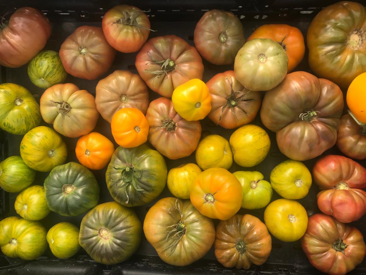 The final days on the plant are the most important time for winter squash. These final days send all the goodness to mature the seeds. When it is time to harvest, harvesting is done by cutting the vine close to the peduncle. Peduncle??? Yes, that’s the stalk bearing a flower or fruit! Ideally harvesting is done before it gets too cold at night and we also like to bring them in dry to avoid passing along any diseases that are spread with the rain. Squash are inspected at time of harvest and not brought in if there is a problem. The harvested winter squashes are put into bins and brought to the greenhouse and laid on airing racks to cure for two weeks. Once cured, they are moved to storage bins, weighed and labelled for future CSA pick up.