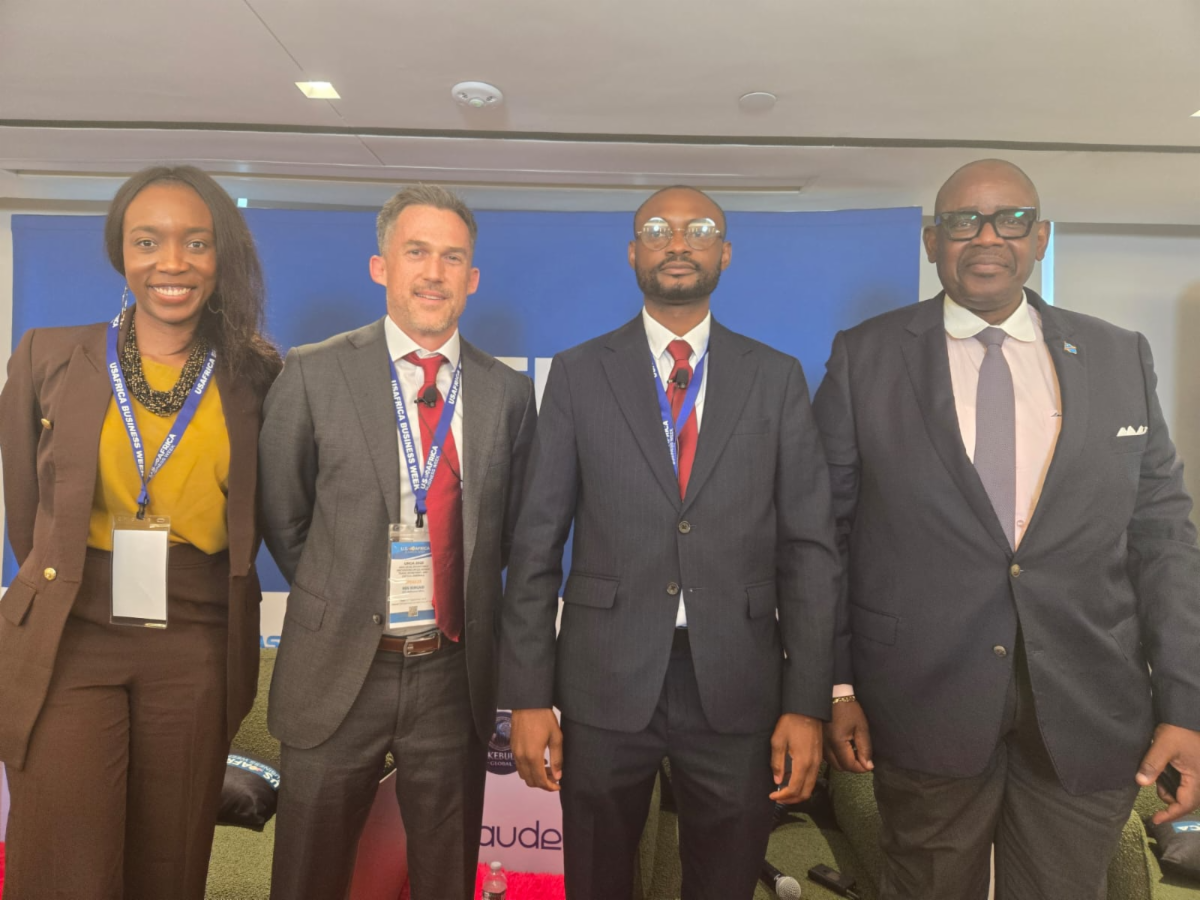 Pictured with Ben, who shared the critical minerals panel with Democratic Republic of the Congo Minister of Mines Louis Watum Kabamba (far right) at the USAfrica Business Week summit, are panel moderator Vivian Ojo from the African Development Bank, and Dr. Femi Salami, from MinePro and Energy.