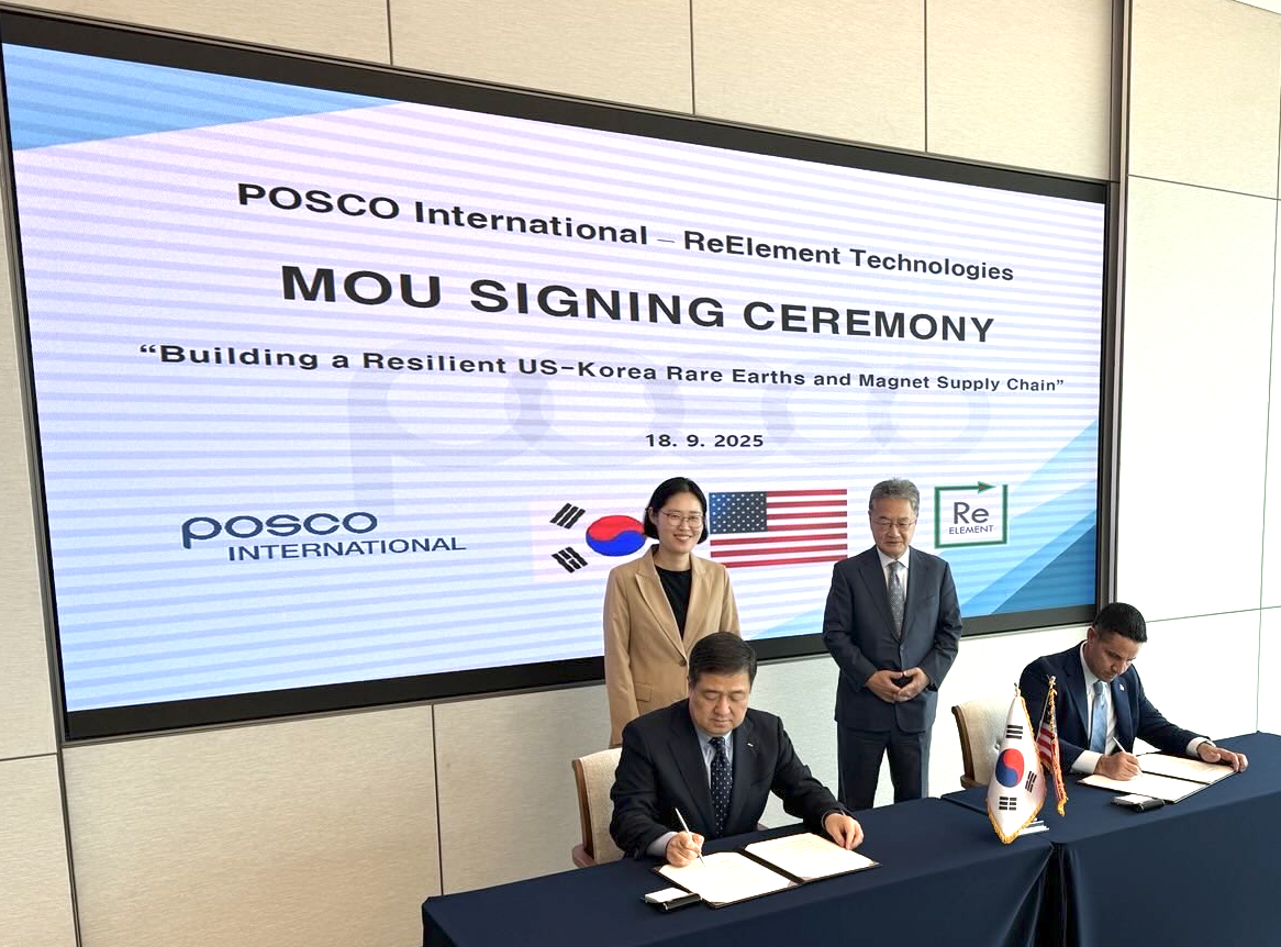 FISHERS, Ind. (Sept. 29 2025) - September has been an exciting month for ReElement as we expanded our global reach with new and established partners from around the world. Today we are announcing a long-term commercial offtake partnership with POSCO International to advance U.S. rare earth refining capabilities. The agreement advances U.S.-South Korea collaboration and supports sustainable supply chains for defense, clean energy, and advanced technologies. We are establishing a joint feedstock taskforce for sourcing domestic and international rare earth feedstock both recycled and from ore bodies.
