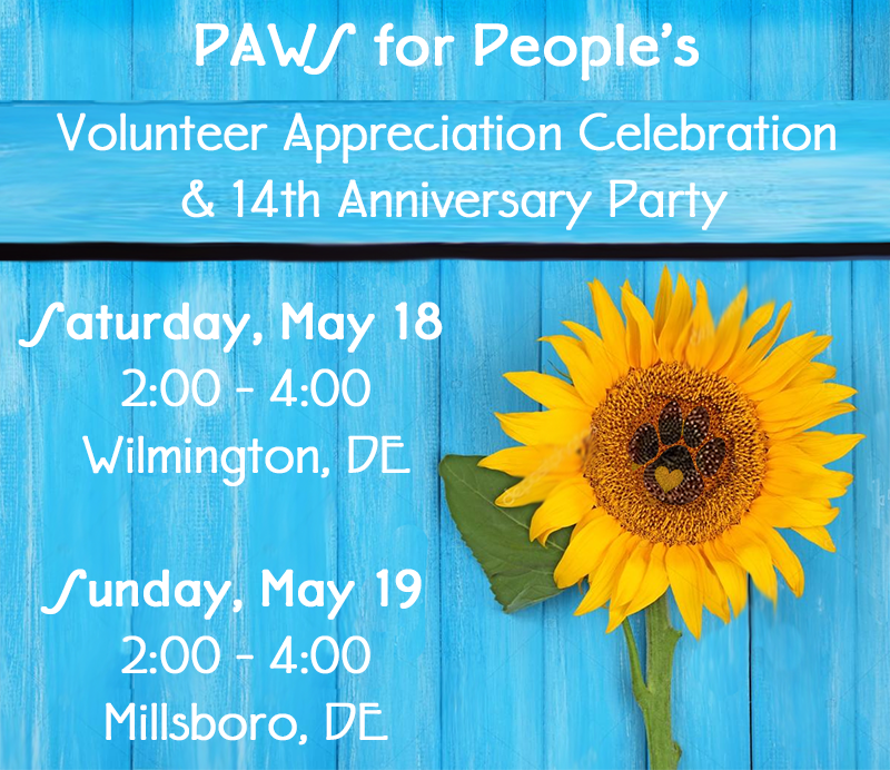 We need pet therapy teams and volunteers (without a pet) to help with this project. Because this involves lots of folks, we have a special online sign up. Click on the sign up link, then choose which location you would like to visit (Concord Pike or Christiana Mall), then choose the day and the shift and sign up.