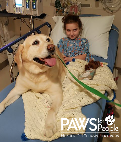 My daughter, Debs, was at the A.I. duPont Hospital for Children Nemours Emergency Room last week due to severe dehydration and low blood sugar. While there, we were lucky enough to have had a visit by Sandy and her human Craig McClintock! Sandy is just the sweetest and it really helped my daughter. Sandy showed up right after Debs got her IV put in and stayed while she had her blood sugar checked twice via a finger prick. Sandy was able to help Debs be brave and gave her just the right amount of kisses!!