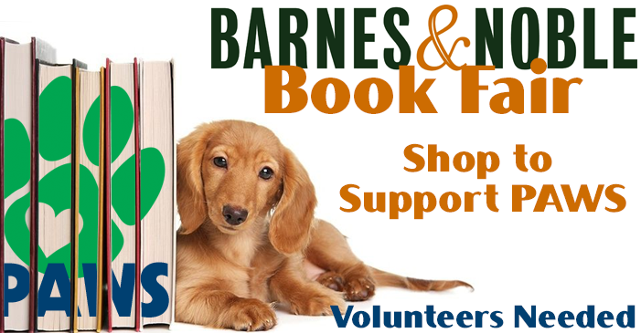 During the book fair we will have special vouchers that we can distribute to customers. When a customer presents the voucher at the cash registers (including in the cafe), Barnes & Noble will donate a portion of the sales to PAWS for People.