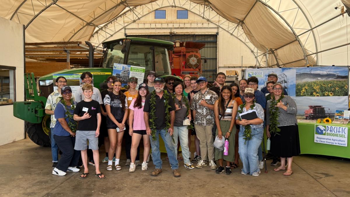 In August, Pacific Biodiesel co-founders Bob and Kelly King met with a very special group of students and advisors at the Kings' Maui sunflower farm to share their companyʻs regenerative agriculture and renewable fuel production model.