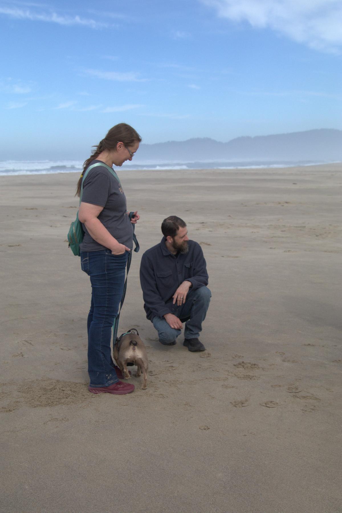 | | Team Cari and Rocky with husband, Brandon | | Violet, resting on the cool sand. She appointed herself as our walk leader to successfully navigate the walking trail through the forest to the beach. | | | | |
