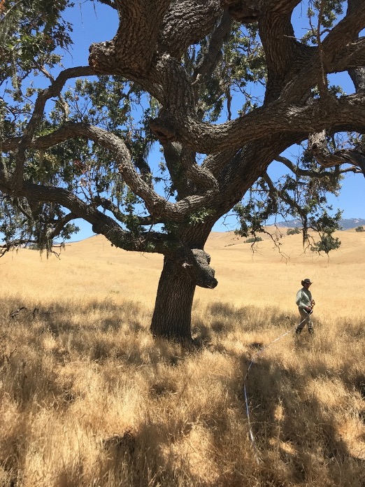 La Kretz Research Center Director Frank Davis and UCSB PhD student Kaili Brande have been covering many miles in the summer heat to collect oak survey data throughout Figueroa Valley and the Reserve.
