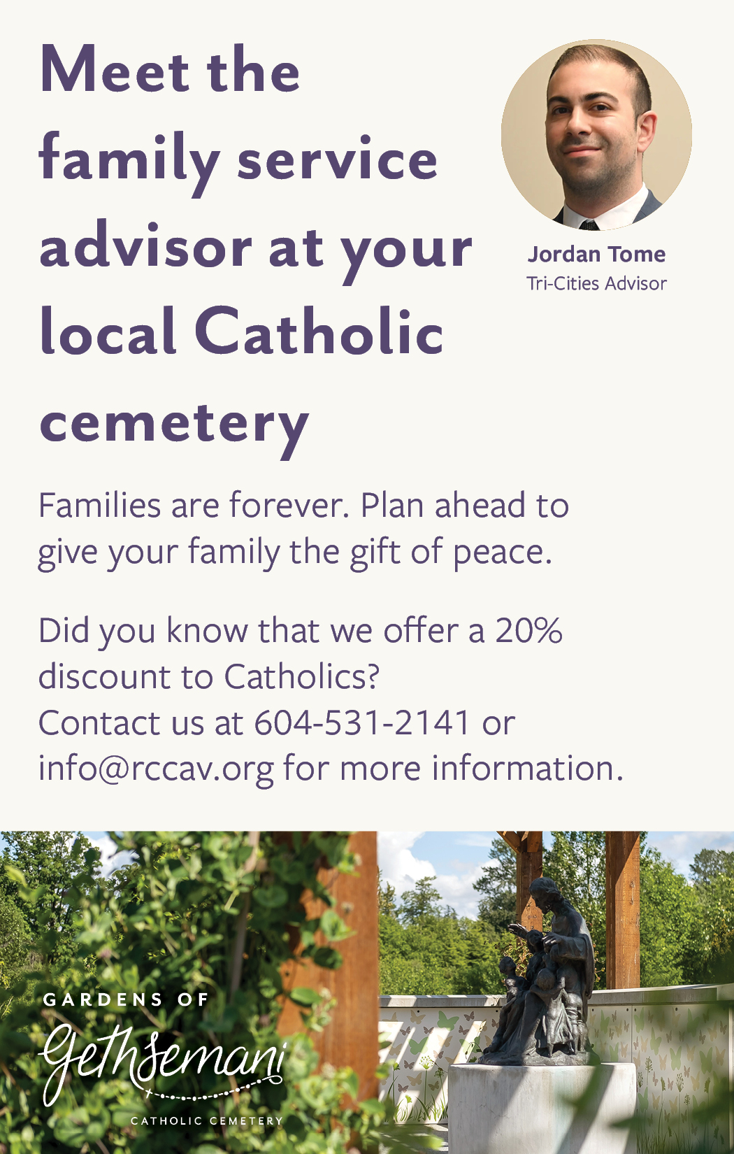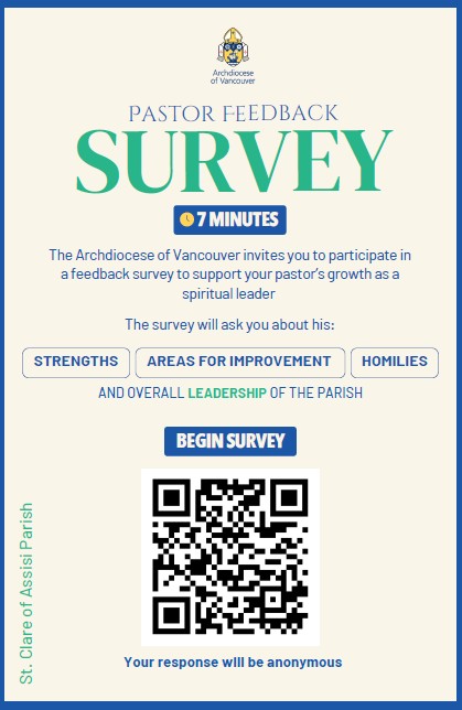 Our appreciation goes out to all parishioners who have made a gift to Project Advance. To date, we have received gifts totaling $142,396 from 267 of our families. Of this, $80,096 will be returned to St. Clare’s. Our goal is to raise $200,000 by the end of the year. Remember that now ALL new donations will be applied to paying our mortgage and building a new rectory and office as our Archdiocesan goal has been met. Please continue to respond in prayer and generosity. Our sharing reflects our caring. You can give online at projectadvance.ca, by phone at 604-683-0281, or in-person at our parish’s office. Thank you so much for your support.