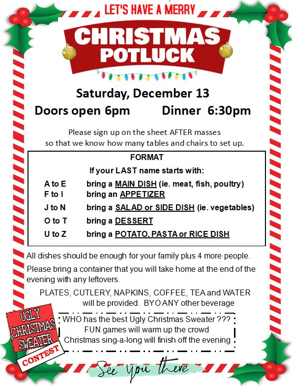 SIGN UP FOR THE CHRISTMAS POTLUCK THIS WEEKEND