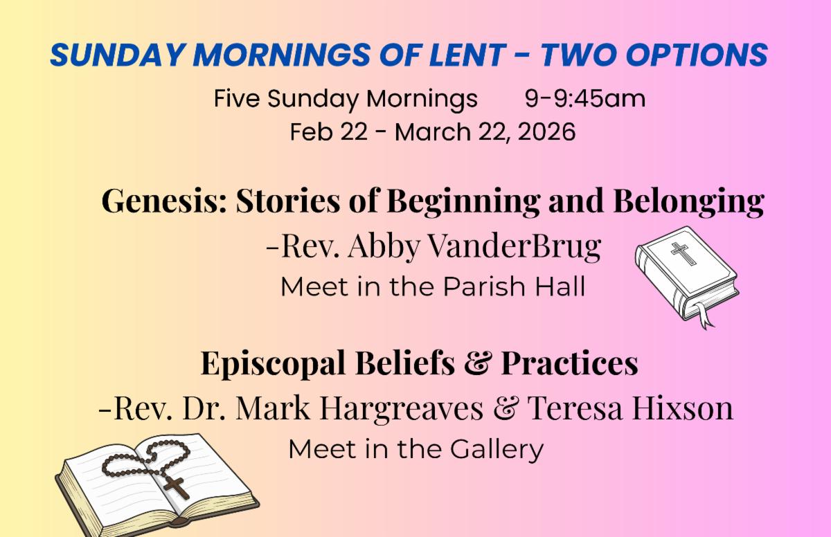 Wednesdays, Feb. 25, March 4,11,18,25; 6:30 - 7:30 pm, Parish Hall