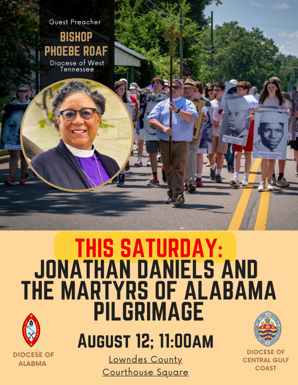 Please join us on Saturday, August 12, 2023, for the 26th Annual Jonathan Daniels Pilgrimage. We will gather in the courthouse square in Hayneville, Alabama, and begin our pilgrimage procession at 11 am. The procession will travel from the square to the old County Jail where Daniels was among those detained for a week after being arrested in Fort Deposit for picketing white-only businesses. The procession continues to the site of the old Varner’s Cash Store, where Daniels was killed. The procession ends in the Lowndes County Courthouse, where a service of Holy Communion will be celebrated in the courtroom where the man who shot Daniels had been tried and acquitted by an all-white jury. Register for the pilgrimage here.