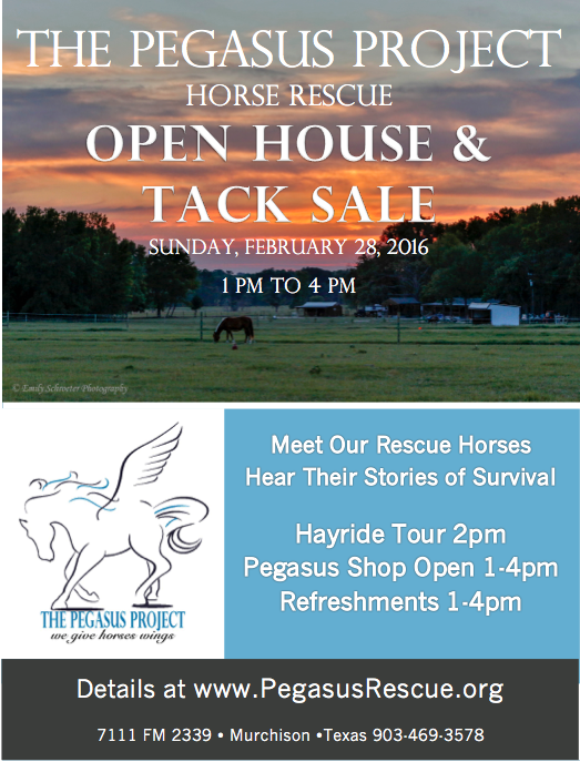 The Pegasus Project will swing open the gates for our quarterly open house Sunday, February 28th from 1pm until 4pm. Come tour the ranch, meet the horses you've been following, and get to know our incredible staff. We'll have a hayride at 2pm, and we'll serve refreshment and have Pegasus logo attire for sale all day.