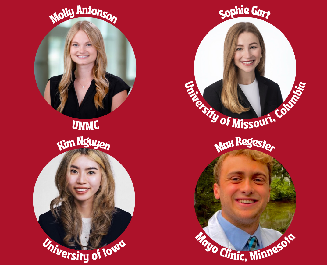 We are also incredibly proud to share that all four of our UNMC medical students who applied to dermatology residency programs successfully matched! Molly will be staying with us at UNMC, while Sophie, Kim, and Max will be continuing their dermatology training at programs across the Midwest (pictured below).