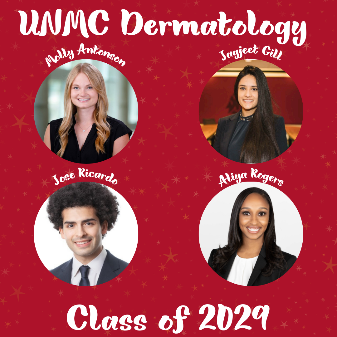 We are thrilled to announce that four outstanding future resident physicians have matched into our ACGME dermatology program at UNMC! Please join us in welcoming Molly Antonson, Jagjeet Gill, Jose Ricardo, and Aliya Rogers (pictured above), who will be joining our team on July 1, 2026.