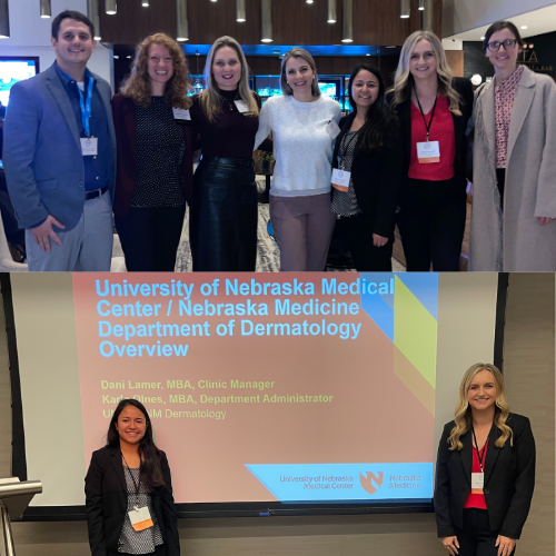 In November, some members of our faculty and leadership team attended the Association of Professors of Dermatology (APD) Annual Conference in Chicago, IL. Our Department Administrator, Karle Olnes, and Clinic Manager, Dani Lamer, proudly presented an overview of the UNMC/Nebraska Medicine Department of Dermatology and shared best practices with the Dermatology Academic Administrators Group (DAAG) colleagues. Our faculty that were in attendance participated in breakout sessions, including the Dermatology Teachers Exchange Group (DTEG), Dermatopathology, Pediatric Dermatology, and Dermatologic Surgery Sections. It was an inspiring experience to connect with passionate professionals in academic medicine, exchange ideas, and spark new opportunities for collaboration.