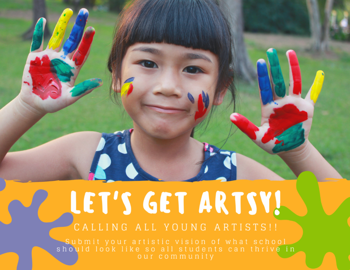 Young and aspiring art students of all ages are invited to submit original pieces of artwork (any kinds as long as it can be photographed or digitized) representing their vision of what school should be like in order for ALL students to thrive in college, career, and our community.