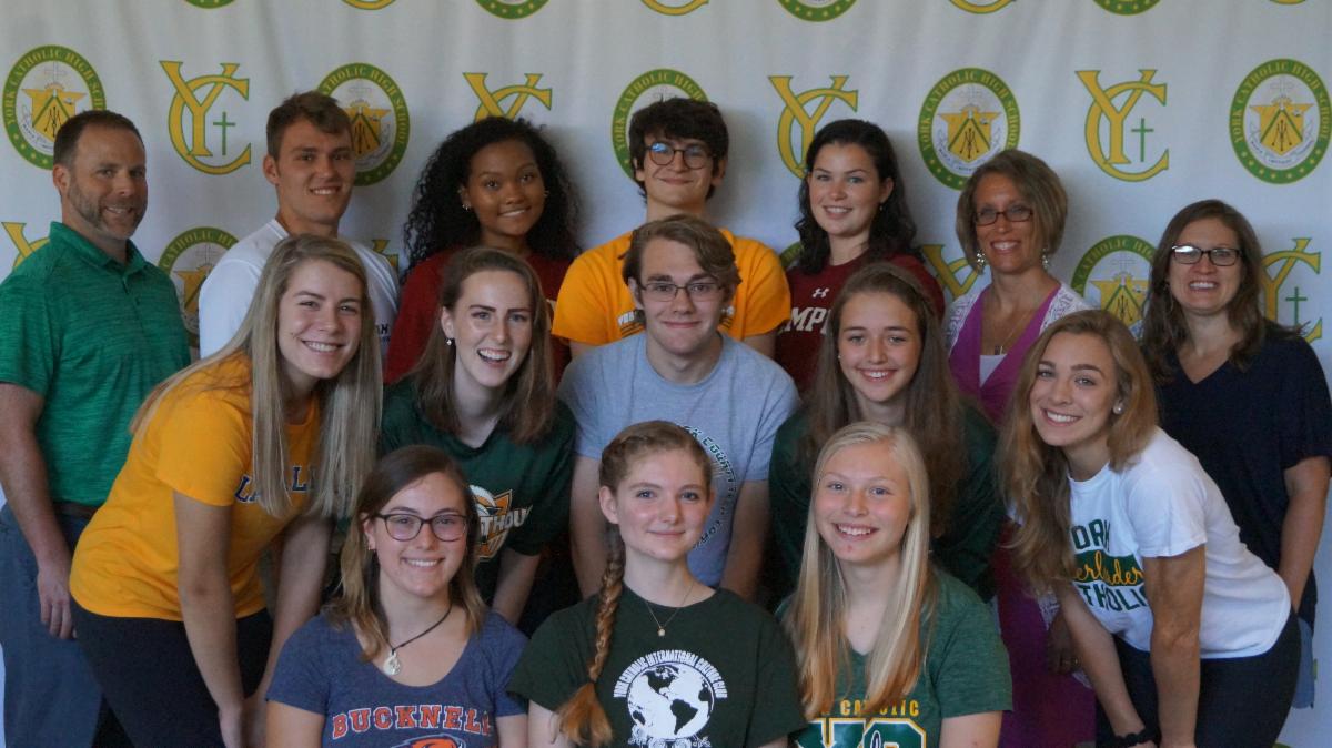 York Catholic Advanced Placement Students Score 5s on at Least One AP Exam Left to right - front row-Miranda Shearer, Alaina Uricheck, Lori Schlosser. Middle row-Sarah Reed, Tori Ellis, Christian Gervasi, Josie McKeon, Paige Gordon. Back row-Teacher Mr. Phillip Autrey, Richard Pokrivka, Amillion Kearse, Moses Krueger, Isabella Kepner, Teacher Mrs. Jill Euclide, Teacher Megan Wertz. Not pictured-Zachary Bogart, Patrick Freed, Luke Motter, Dylan Smith. |