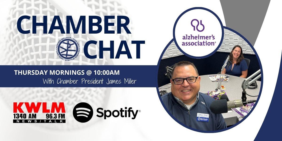 | | Thursday mornings on Open Mic, Chamber President James Miller hosts Chamber Chat. Last week, James was joined in studio by Ashley Snell, Vice President of Development for Alzheimer's Association Minnesota - North Dakota. | | |