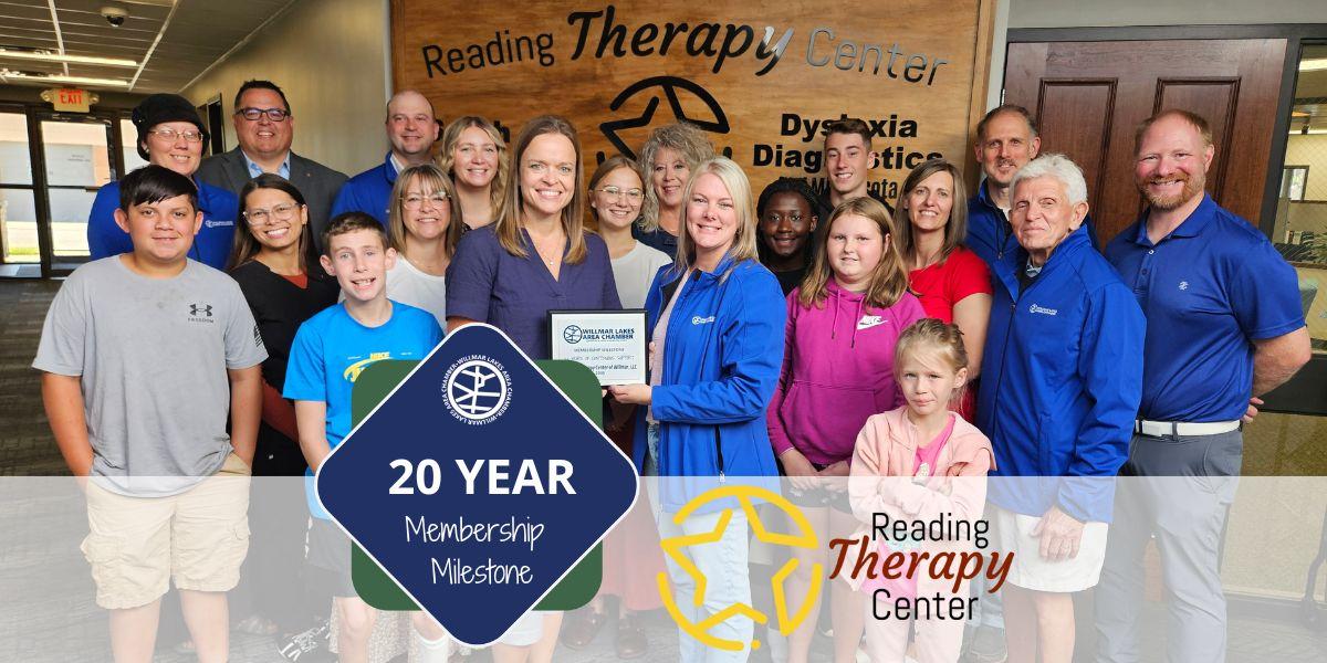 Congratulations and thank you to Reading Therapy Center for 20 years of continuous support and involvement with the Willmar Lakes Area Chamber!