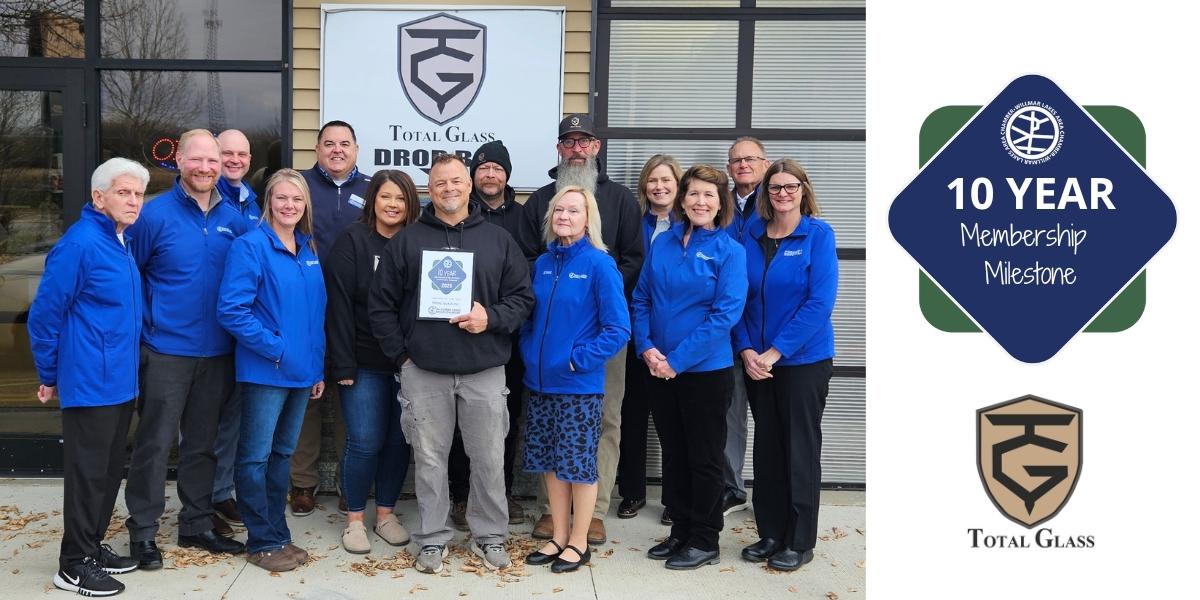 Congratulations and thank you to Ingrid Moulton, Shon Giernet, Marcus Kendall, and Jon Anderson of Total Glass Inc. on 10 years of membership and support of the Willmar Lakes Area Chamber!