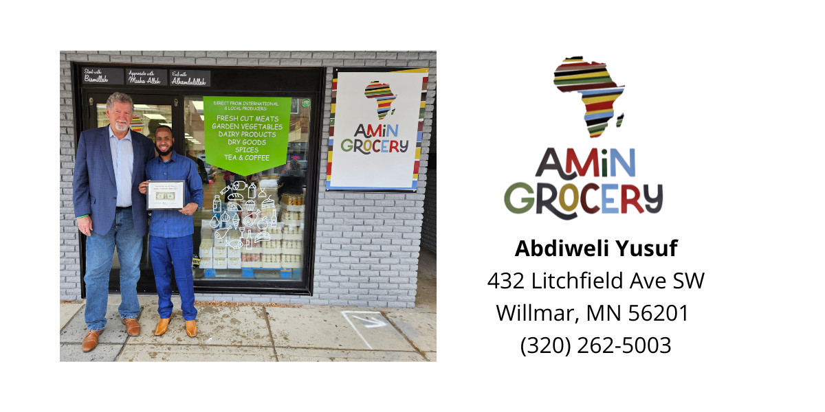 Amin Grocery is an international grocery store carrying East African and local foods, as well as a wide variety of dry goods and specialty items. Abdiweli is on the Willmar Main Street Board of Directors and is also a recent graduate of the EDC's Elevate business academy. | |