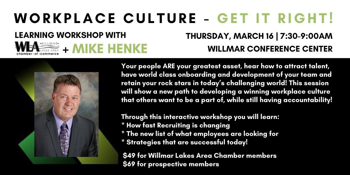 - Thursday, March 16 at 7:30am - Workplace Culture Workshop at the Conference Center