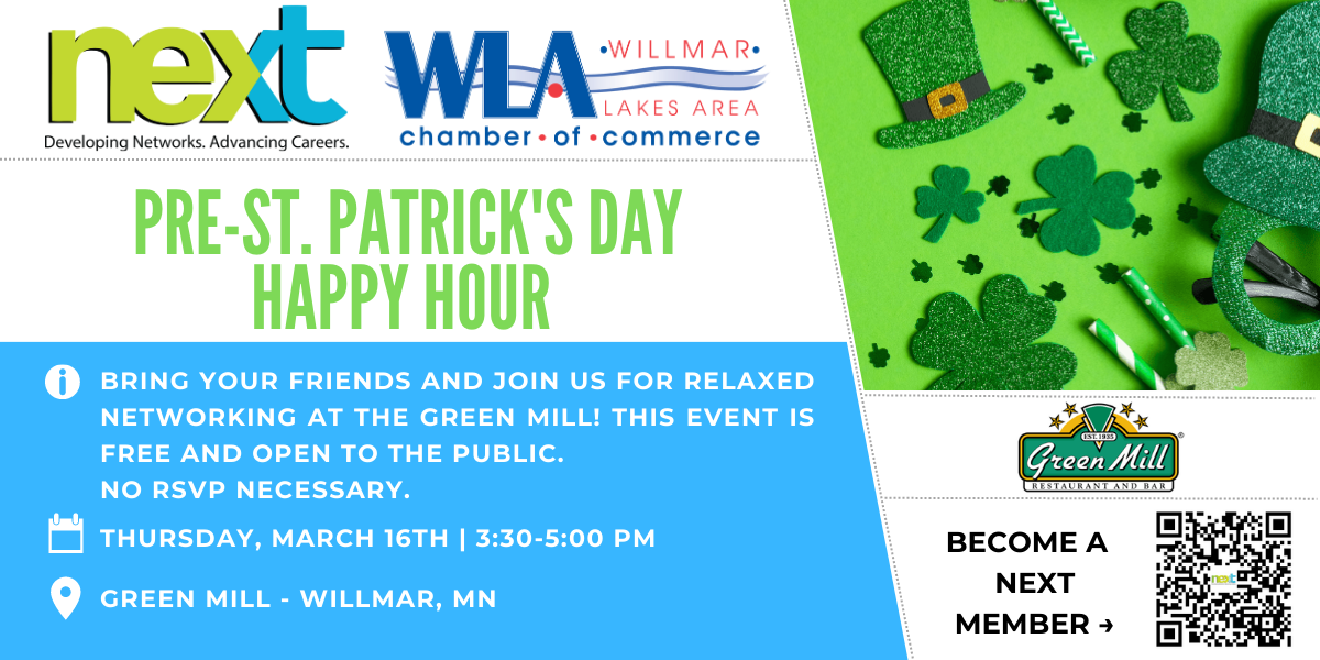 - Thursday, March 16 at 3:30pm - neXt Pre-St. Patrick's Day Happy Hour at Green Mill