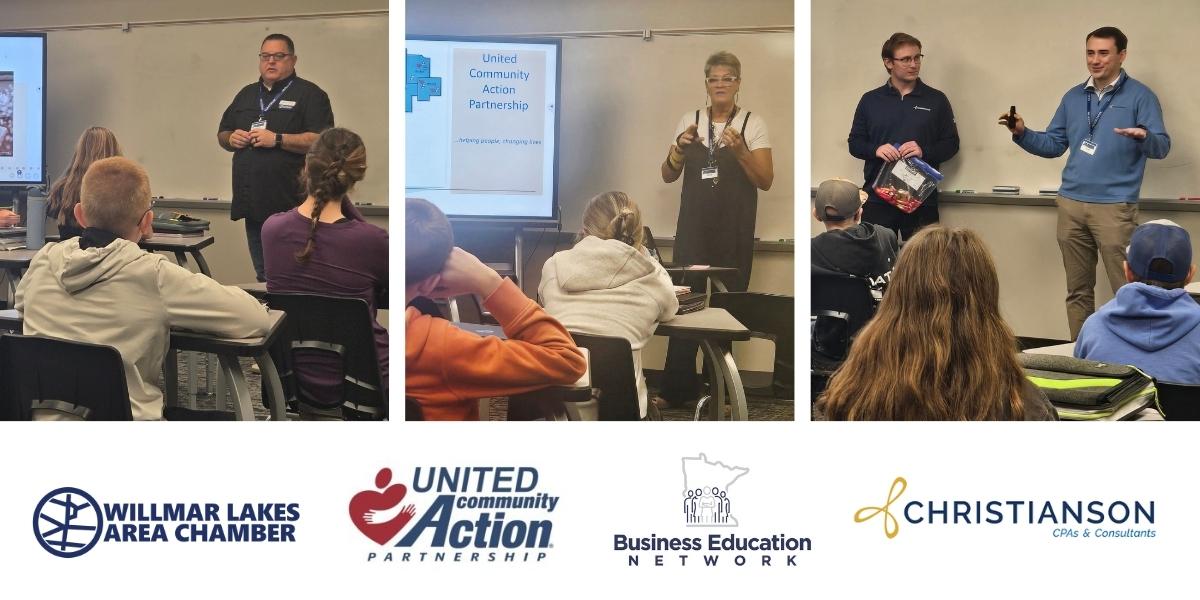 A big thank you to: Debi Brandt (United Community Action Partnership), Riley Cronen and Andrew Miller (Christianson CPAs and Consultants), and James Miller (Willmar Lakes Area Chamber) for presenting and inspiring the next generation!