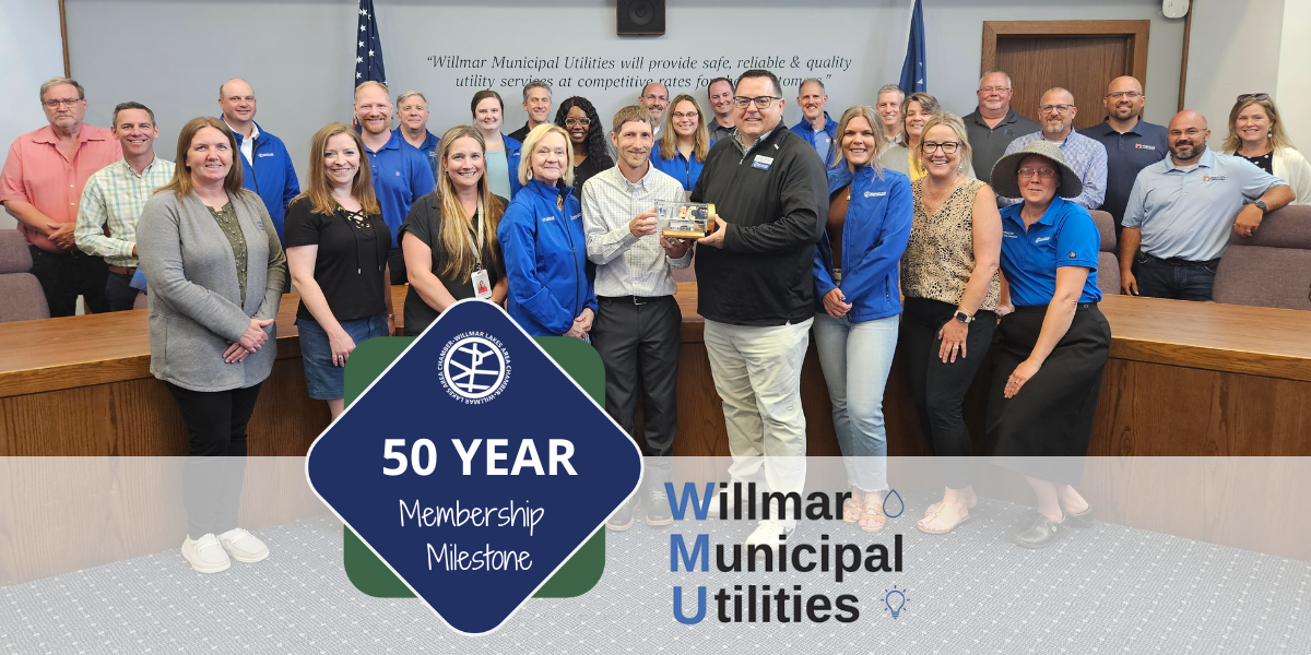 Congratulations and thank you to Willmar Municipal Utilities for 50 years of continuous support of the Chamber! Established in 1891, Willmar Municipal Utilities' mission is to provide the highest quality, lowest cost services while being fiscally responsible. WMU promotes three principles: deliver service that exceeds customer expectations, provide a solid financial foundation for the City of Willmar, and improve service efficiency using industry proven processes and technologies.