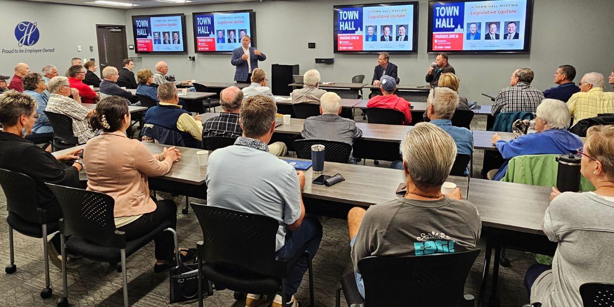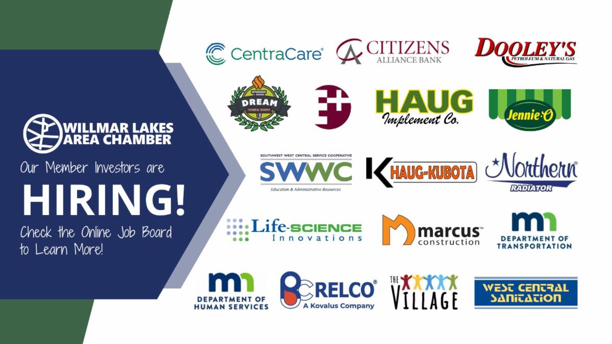 Representing the Chamber: Andrew Kveene (Edward Jones), Brittany VanDerBill (B.VanDerBill Consulting), Jeff Martinka (United Prairie), Tayla Boersma and Lindsey Peters (MinnWest Technology Campus), Suzanne Hass (Allstate Insurance), Lexi Kopacek (Christianson CPAs and Consultants), President/CEO James Miller, Jon Schmidt (DataSucess), Jayme Sczublewski (New London Real Estate), Steve Gardner (Willmar Electric), Amy Evink (Mick Quinn - State Farm), Jessica Hanson (Willmar Hypnosis), Dan Jacobs and Jason Kowalczyk (Marcus Construction), and Tracy Lundy (Lake Region Bank).