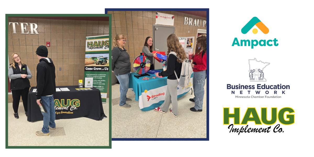 The Business Education Network and Willmar High School welcomed Ampact and Haug Implement on May 21st. Students were able to spin the wheel for prizes and answer questions about agriculture while they learned more about these two organizations.