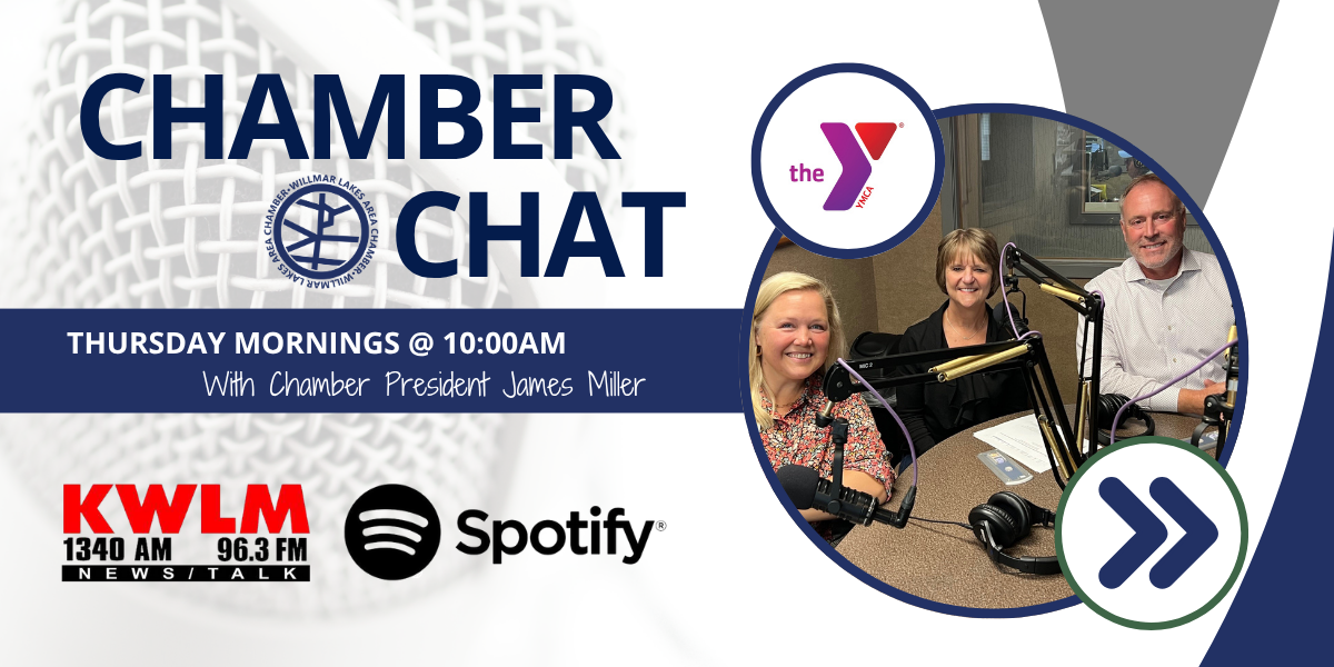 | | Thursday mornings on Open Mic, Chamber President James Miller hosts Chamber Chat. Last week, James was joined in studio by Kandiyohi County Area Family YMCA Board members, Mary Jo deCathelineau, Bradley Pederson, and Interim CEO Missy Fike. | | |
