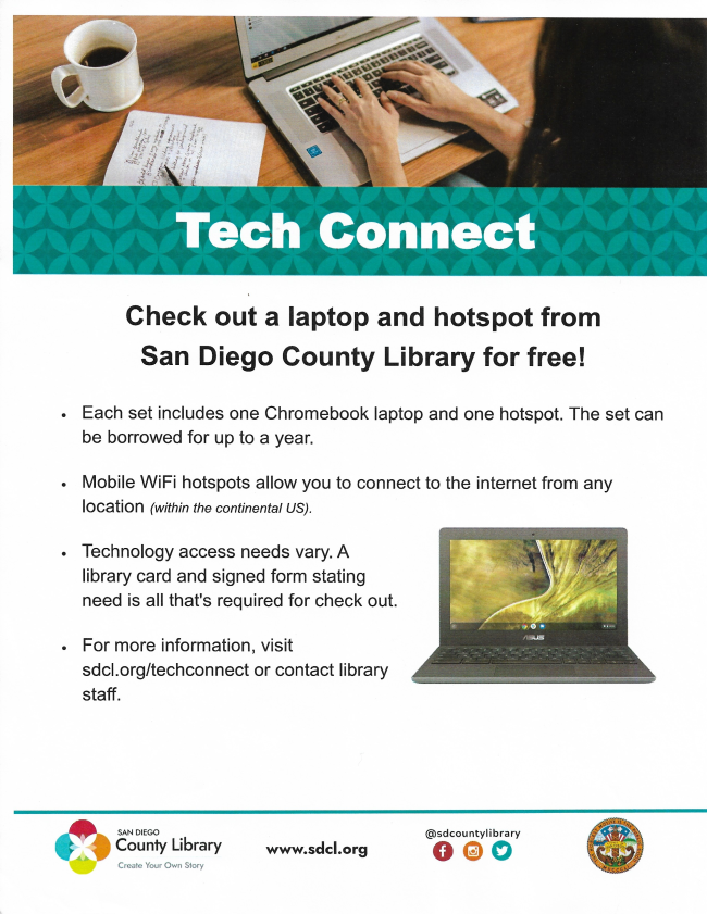 Library card holders in need can now check out a chromebook laptop and a mobile AT&T hot spot at no cost for up to a year.