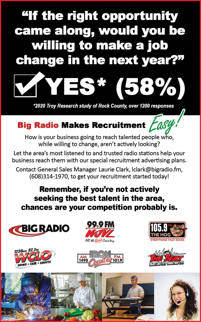 Contact General Manager Laurie Clark, lclark@bigradio.fm, (608)-314-1970 to get your recruitment started today!