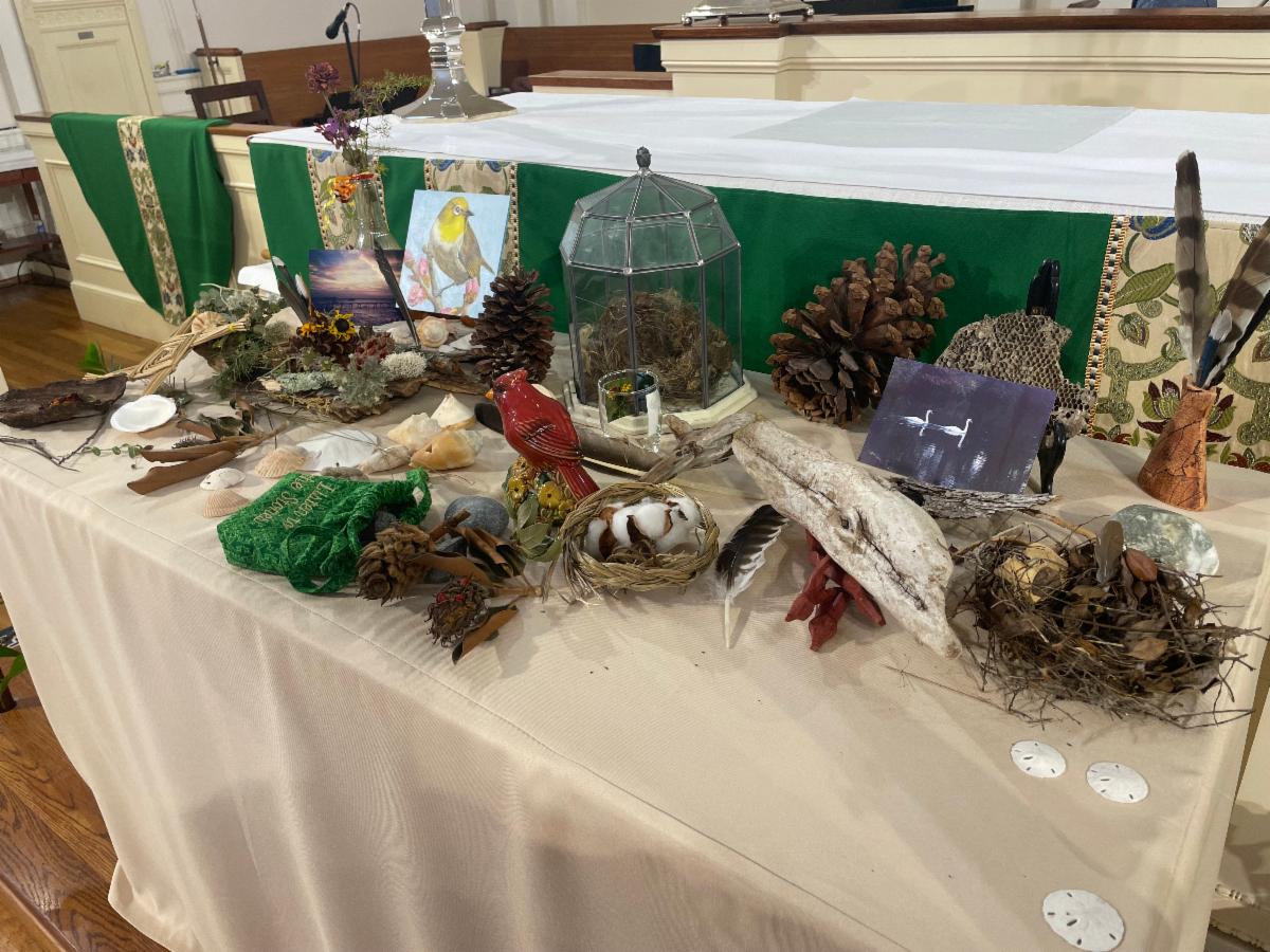 Altar - This table (photo below) was up all month at the altar and folks were invited to place something meaningful to them, to remind us that we’re in a worshipping community that includes the wider creation.