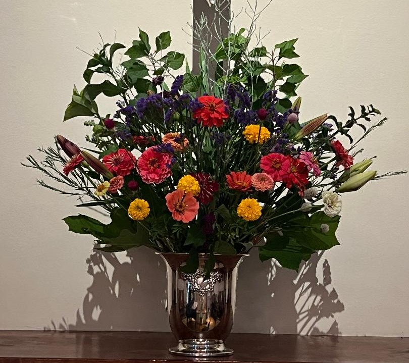 One Sunday the altar flowers were from a local flower farm, Blossom Lane Farms, using ecologically healthy growing practices (photo below).